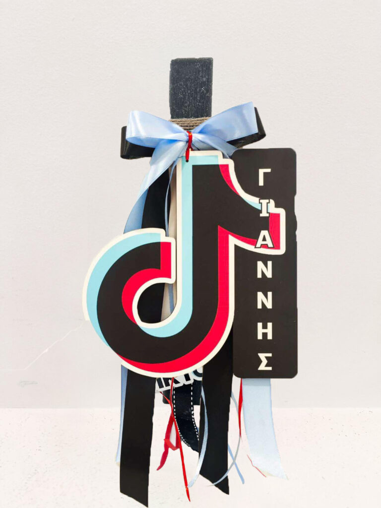 Πασχαλινή Αρωματική Λαμπάδα TikTok με Κρεμαστό Ξύλινο Ταμπελάκι Ονόματος