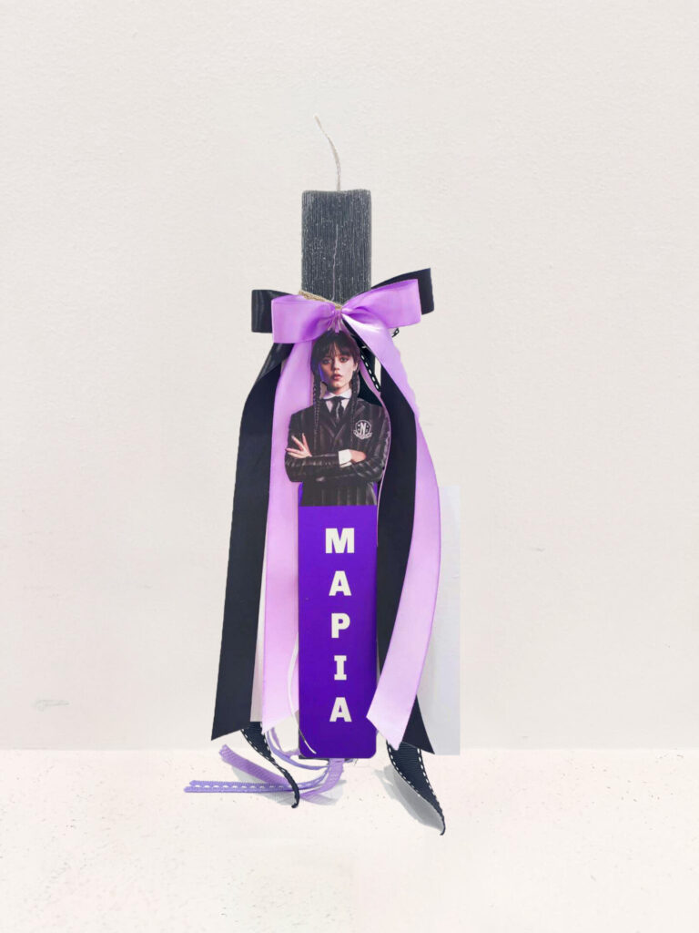 Πασχαλινή Αρωματική Λαμπάδα Wednesday με Κρεμαστό Ξύλινο Ταμπελάκι