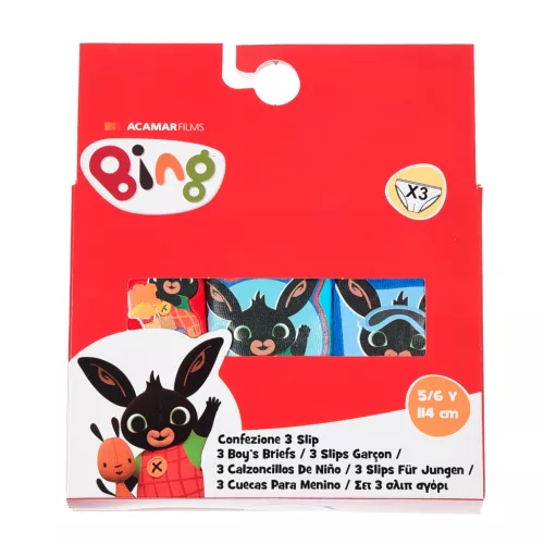 Χαριτωμένα και άνετα εσώρουχα με τον αγαπημένο ήρωα Bing, σετ των 3 τεμαχίων μέσα σε όμορφο κουτί δώρου. 🎁 Ιδανικά για καθημερινή χρήση, με μαλακό ύφασμα που αγκαλιάζει απαλά το παιδικό δέρμα.