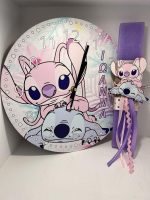 Ξύλινο ρολόι τοίχου με θέμα Lilo and Stitch, προσωποποιημένο με το όνομα του παιδιού