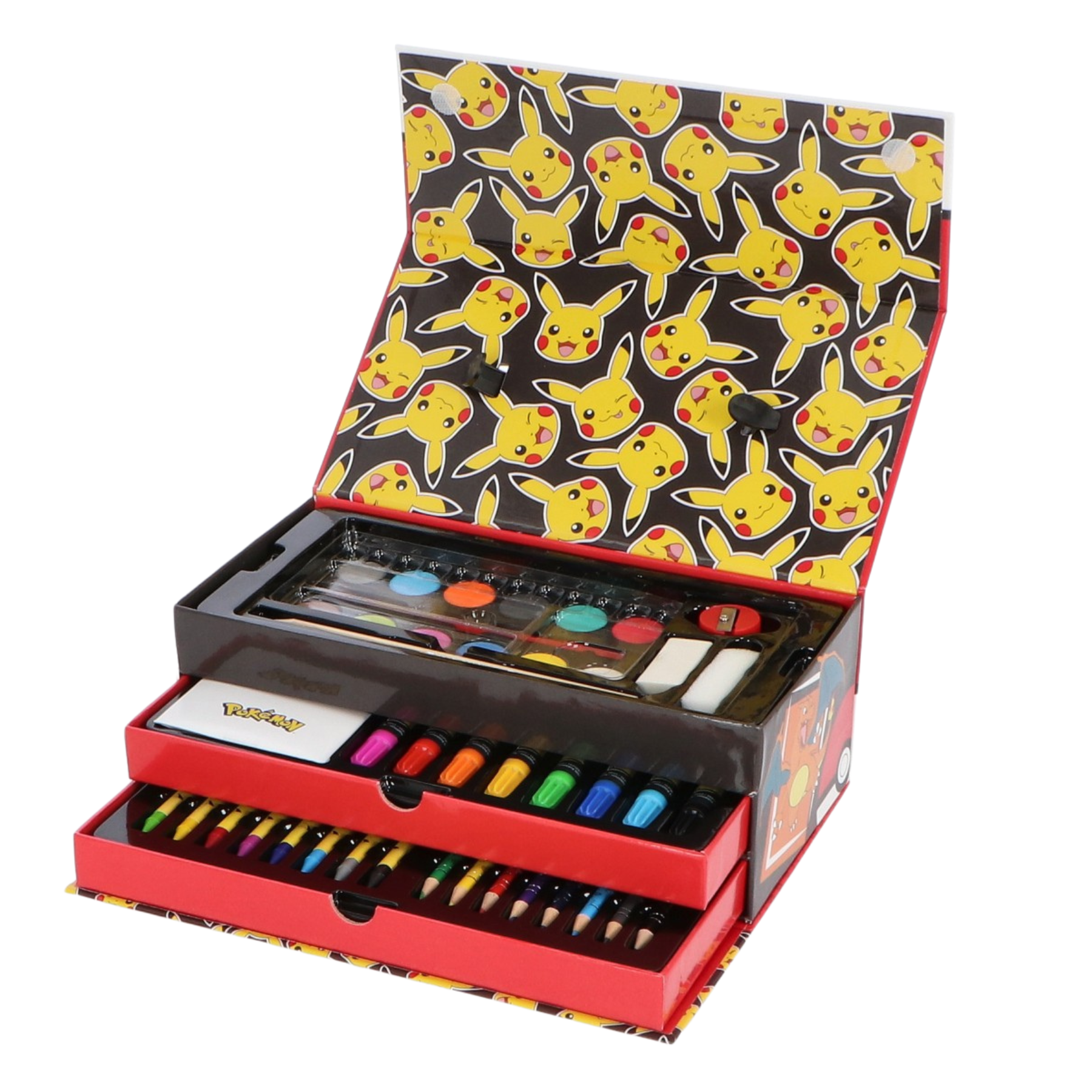 Το Pokemon Color Box with Drawer είναι ένα τριώροφο καλλιτεχνικό σετ, ειδικά σχεδιασμένο για παιδιά που αγαπούν τα Pokemon και θέλουν να εξερευνήσουν τη φαντασία τους μέσα από τη ζωγραφική.